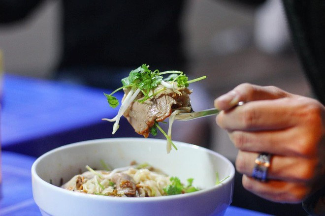 Trộn đều các nguyên liệu để sốt chấm ngấm vào phở rồi thưởng thức, mới thấy vị chua dịu của sốt, cái bùi của gạo, của lạc, các thơm, mềm của thịt hài hòa.