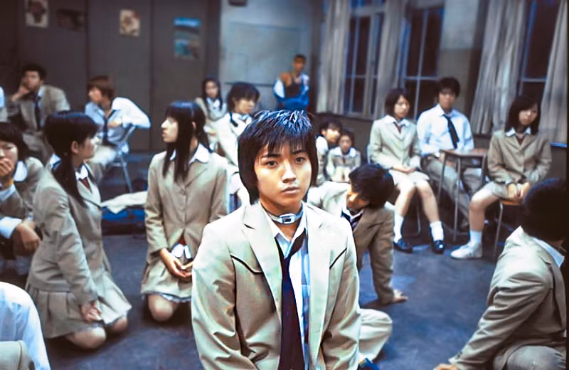 Lớp học của nam chính Nanahara Shuya bất ngờ được chọn, dẫn đến hàng loạt cuộc đấu đẫm máu và đáng sợ cho đến khi chỉ còn 1 học sinh sống sót. Battle Royale thành công vang dội về doanh thu gấp gần 8 lần so với kinh phí. Đây cũng là khởi nguyên của cả dòng phim sinh tồn về sau.