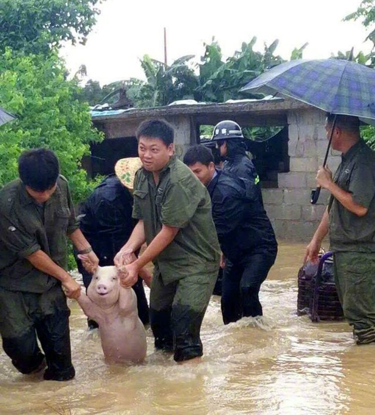Nếu là một Facebook-aholic chăm cập nhật tin tức thì chắc chắn bạn sẽ phải thấy ít nhất một lần hình ảnh “nụ cười đáng thương” của chú lợn được hai người đàn ông giải cứu ra khỏi chuồng sau một trận lụt lớn. Chỉ là một bức ảnh đơn thuần, nhưng nó đang lan tỏa khắp thế giới mạng, chỉ vì biểu cảm quá đỗi đáng yêu của chú lợn.