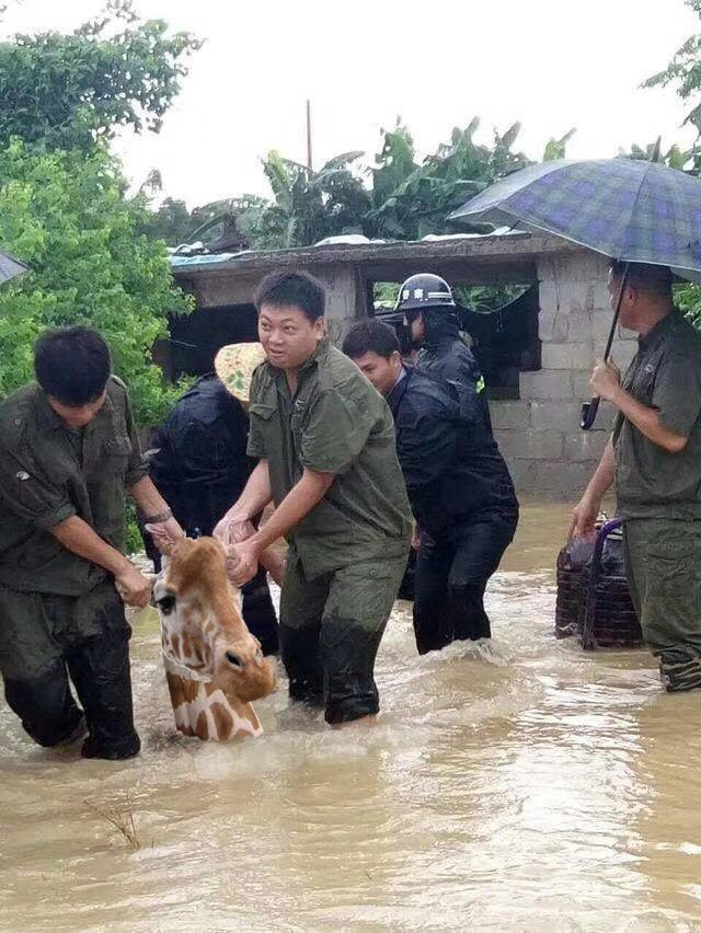 Hươu cao cổ còn cao hơn cả hai anh mà, sao còn kéo tai em ấy làm gì?