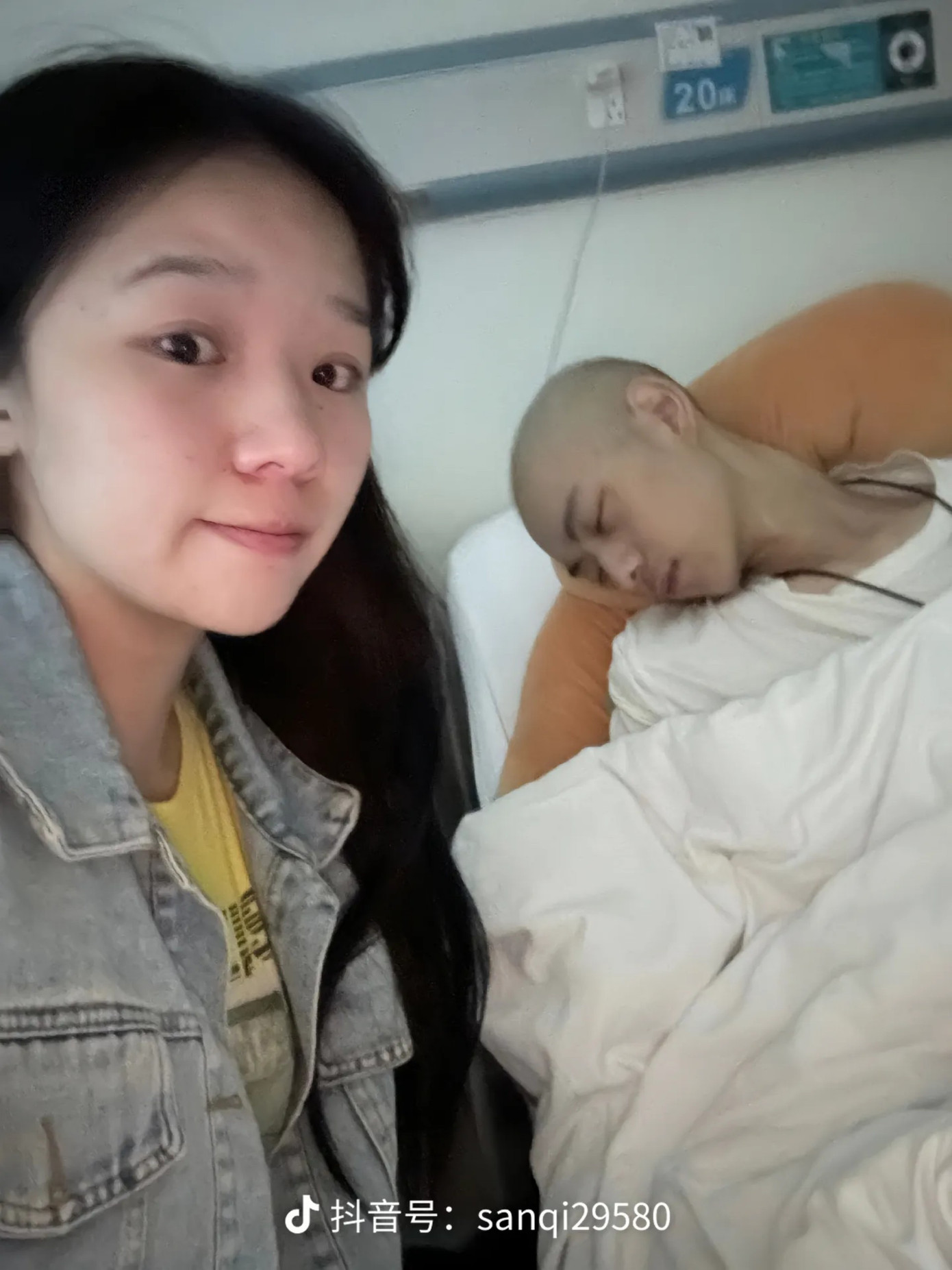Một tài khoản douyin có tên @sanqi29580 đã chia sẻ lại câu chuyện của mình bằng hình ảnh chụp cùng bạn trai đang nằm trên giường bệnh. Hình bạn trai gầy gò và mệt mỏi khi đang phải chiến đấu với căn bệnh ung thư quái ác khiến netizen không khỏi xót xa.