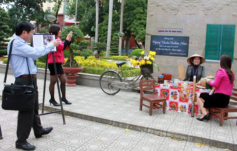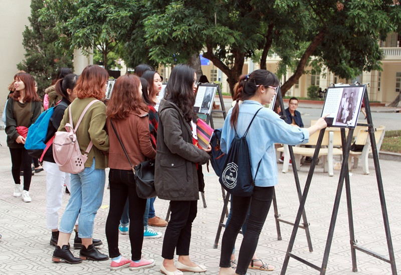 Photobooth dựng lại một góc nhỏ trong văn hóa xưa của người Việt Nam là điểm nhấn của buổi triển lãm được các thầy cô giáo và các bạn sinh viên thích thú check-in.