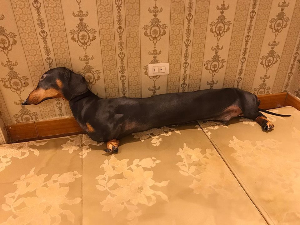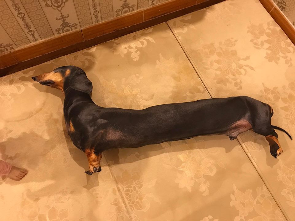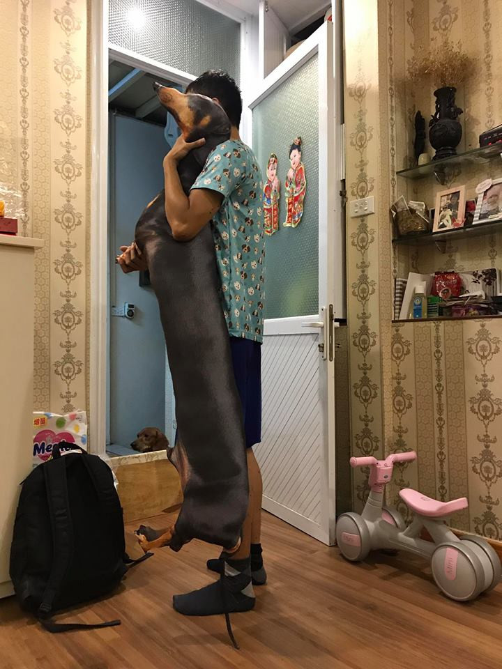 Hóa ra, tâm lí thì có tâm lí đó nhưng anh chồng đã hơi "lố" tay rồi. Thay vì mua một chú cún lông xù xinh đẹp, anh chồng đã "thẳng tay" chi tiền mua một chiếc gối hình chú chó xúc xích không chỉ đen mà còn dài quá mức cho phép. Theo chị vợ mô tả chú cún này dài gần 1 mét rưỡi, dài gần bằng chiều rộng chiếc giường của hai vợ chồng.