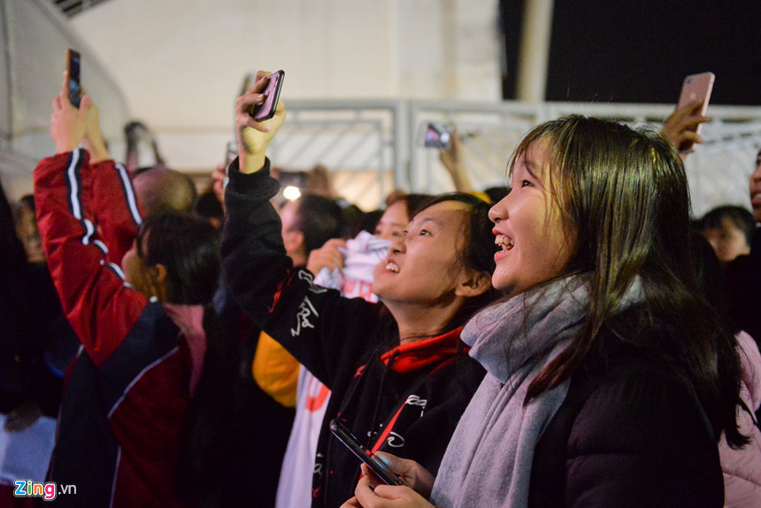 Ở bên dưới, các cổ động viên cầm điện thoại liên tục chụp ảnh, quay video và phát trực tiếp trên mạng xã hội.