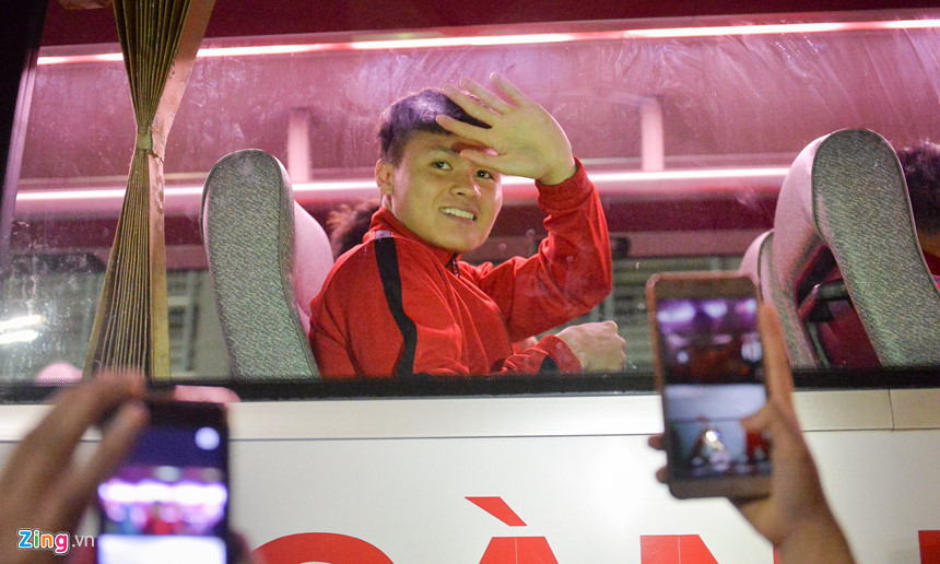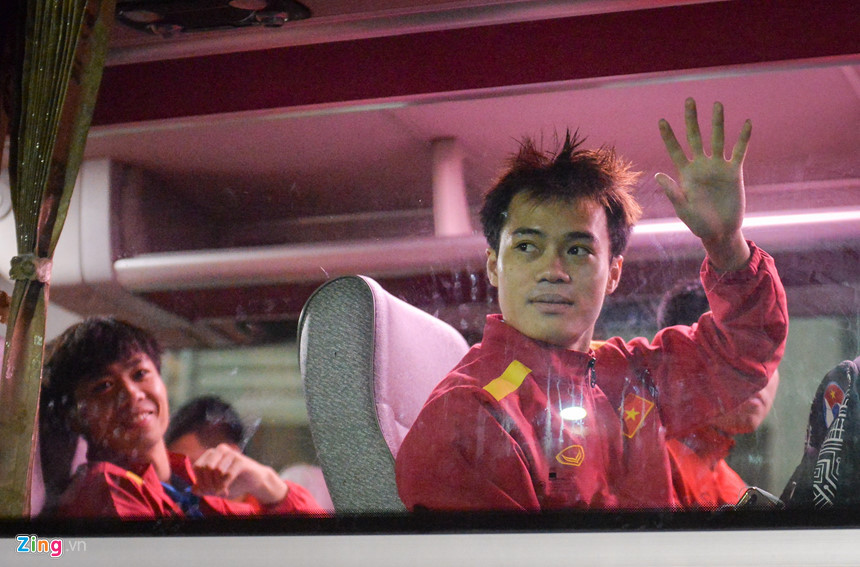 Văn Toàn cũng được rất nhiều cổ động viên hỏi thăm về tình hình chấn thương. Anh thân thiện, liên tục vẫy tay từ sau cửa kính. Hôm nay, cầu thủ phố núi đã quay trở lại tập cùng cả đội sau thời gian dài tập riêng.