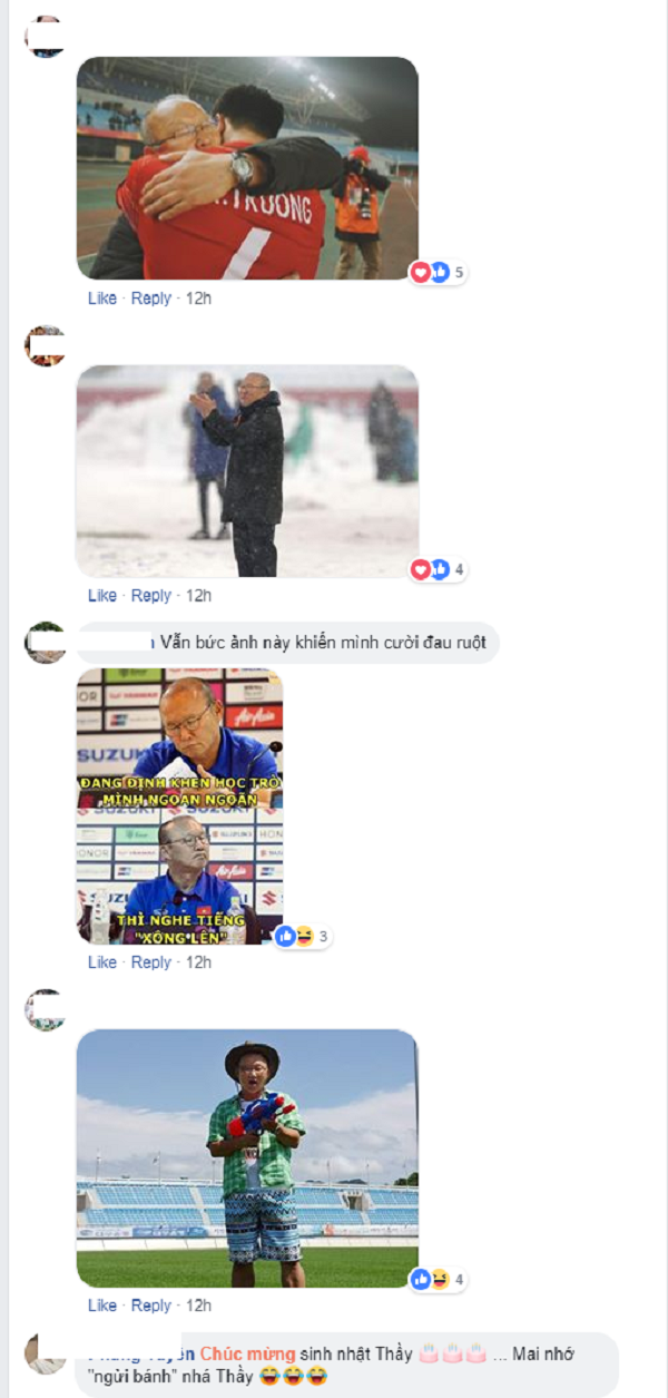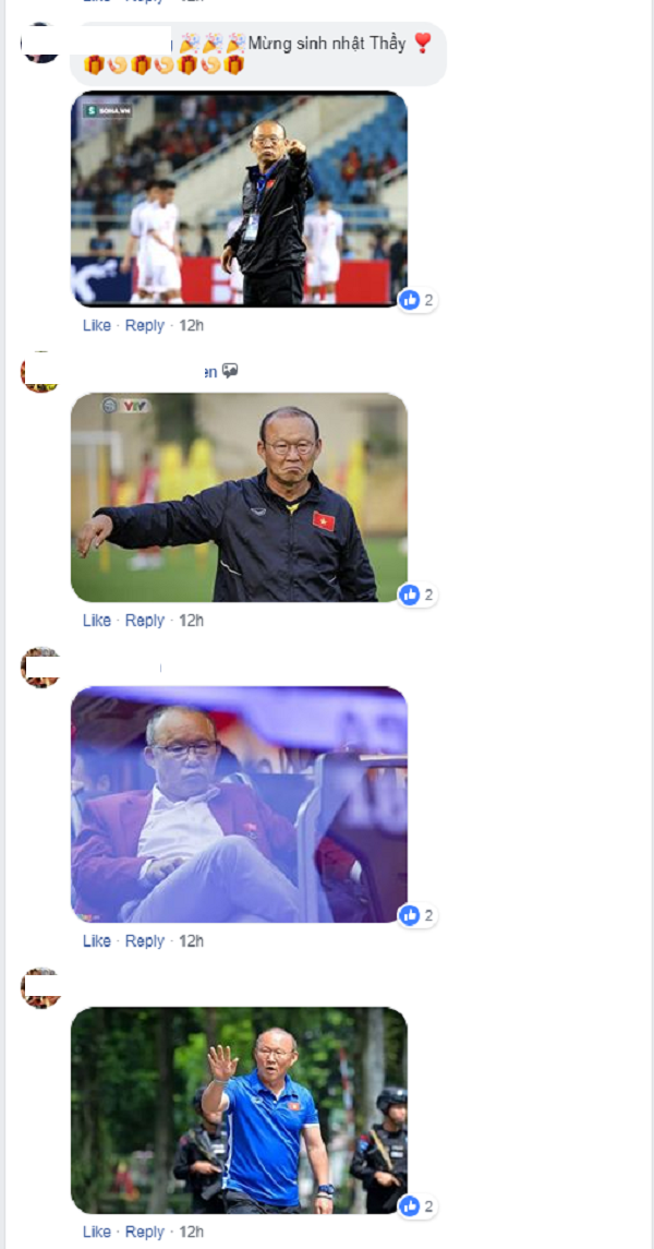 Rất nhiều lời chúc ý nghĩa đã được các fan hâm mộ gửi tới thầy. Facebooker Linh Chi chia sẻ: "Chúc thầy tuổi mới nhiều sức khỏe và có thêm nhiều nhiều thành tích tốt với đội tuyển bóng đá Việt Nam. Chúng con yêu thầy nhiều". "Chúc thầy hôm nay ăn bánh thật nhiều thầy nhé. Chúc mừng sinh nhật thầy Park" - Facebooker Thanh Vân tiếp lời.