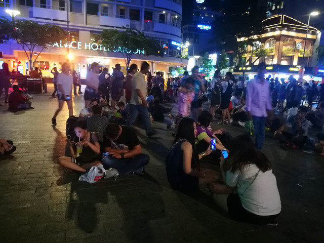 Các bạn trẻ thì tụ tập thành từng nhóm giành những vị trí đẹp để chờ xem bắn pháo hoa.