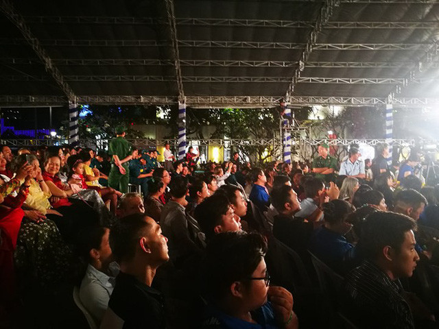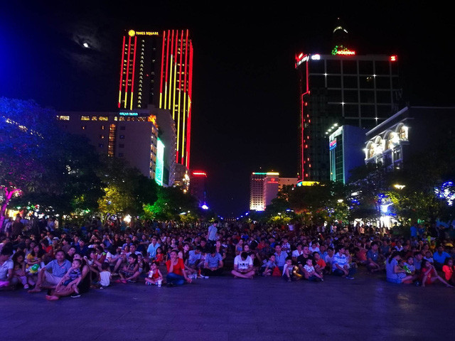 Mọi người tập trung ở đây để xem biểu diễn văn nghệ trong khi chờ đến màn bắn pháo hoa.