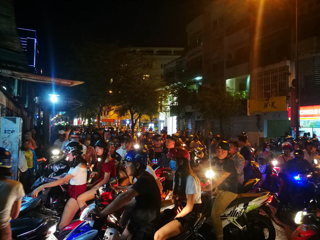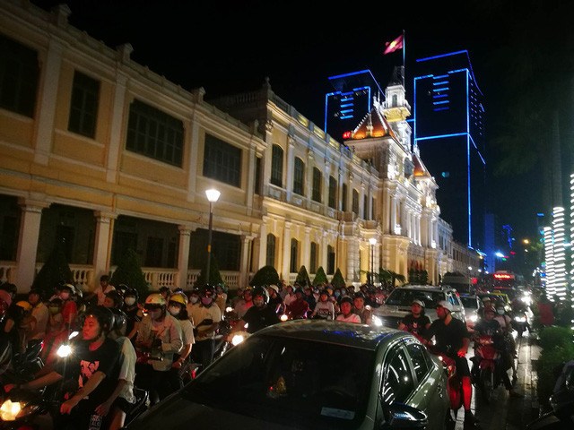 Theo kế hoạch, pháo hoa sẽ được bắn từ 21h - 21h15 nhưng từ 20h, tình hình giao thông ở trung tâm Quận 1 đã rất khó khăn vì dòng xe đổ về đây quá lớn. Các bãi giữ xe gần phố đi bộ hầu như đều hết chỗ gửi.
