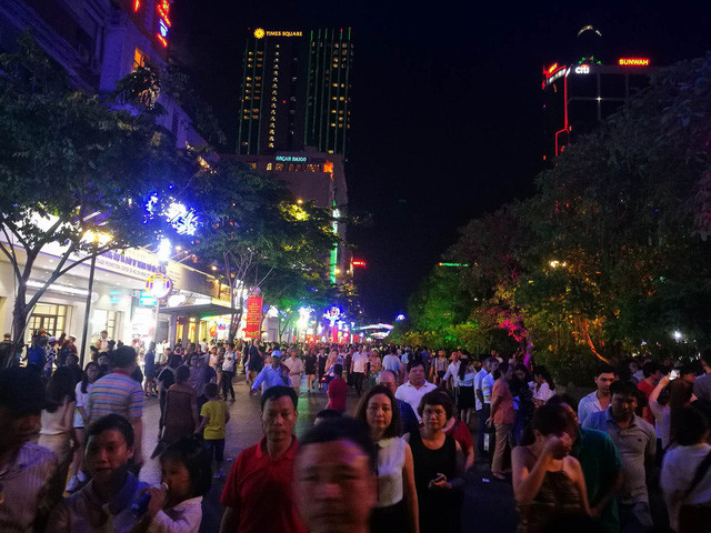Dòng người chen chúc ở phố đi bộ.