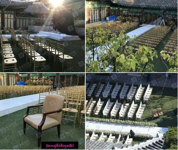Khu vực tổ chức hôn lễ đã trang trí gần xong, và nhìn khá đơn giản, nhưng thanh nhã, đúng với tính cách của cô dâu chú rể.