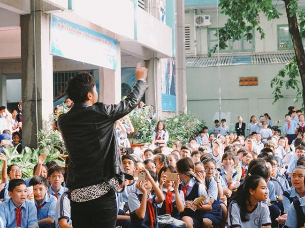 Sau thời gian chào cờ bình thường, giờ sinh hoạt của “thần dân” trường THCS Nguyễn Văn Tố đã nóng hơn bao giờ hết với sự ghé thăm bất ngờ của ba anh chàng điển trai nhóm MONSTAR. Tất cả các bài hát từ Sau tất cả cho đến Baby Baby đều được các bạn học sinh hưởng ứng hát theo vang trời.