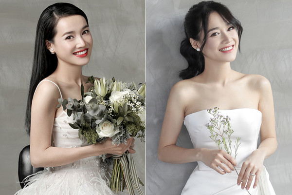 Trong bộ ảnh cưới, Nhã Phương khi tô son đỏ đậm có phần kém sắc so với lúc trang điểm tông hồng trong veo kiểu Hàn Quốc.