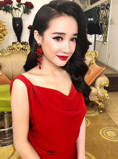 Mỗi khi tô son đỏ, gương mặt của Nhã Phương có phần nặng nề, kém thanh thoát so với thường lệ.