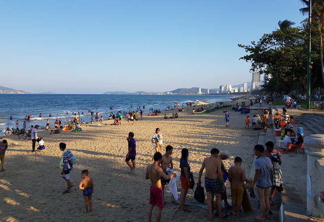 Bãi biển Nha Trang thường đón đông khách vào các dịp lễ lớn.