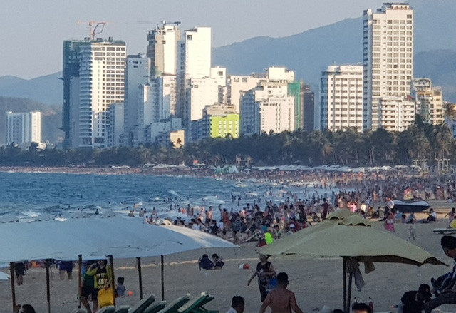 Hình ảnh bãi biển Nha Trang đông nghịt người trong ngày đầu kỳ nghỉ lễ 30/4-1/5, ghi nhận chiều 28/4: