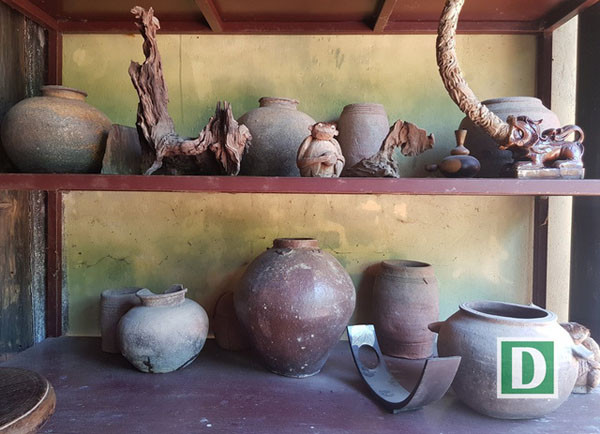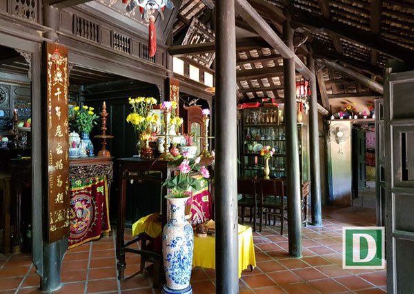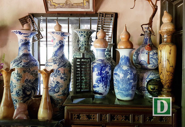 “Căn nhà này do ông cố của tôi xây dựng và tôi là đời thứ 3 thừa kế ngôi nhà”, ông Hải cho biết. Bên trong căn nhà cũng bài trí nhiều đồ cổ có giá trị về mặt văn hóa, niên đại như: Chum, chậu, bình sứ, bát sứ… Ngoài ra, gia chủ còn trưng bày một không gian đồ thổ cẩm, vải vóc, tơ lụa.