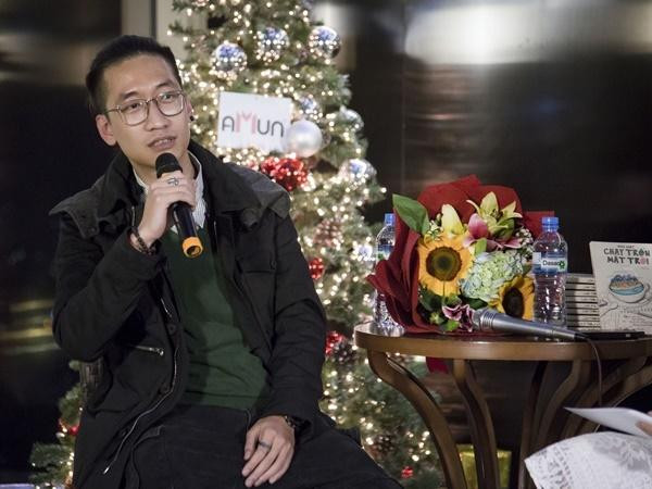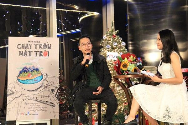 Minh Nhật trong buổi ra mắt cuốn sách mới Chạy trốn Mặt Trời tại Hà Nội.