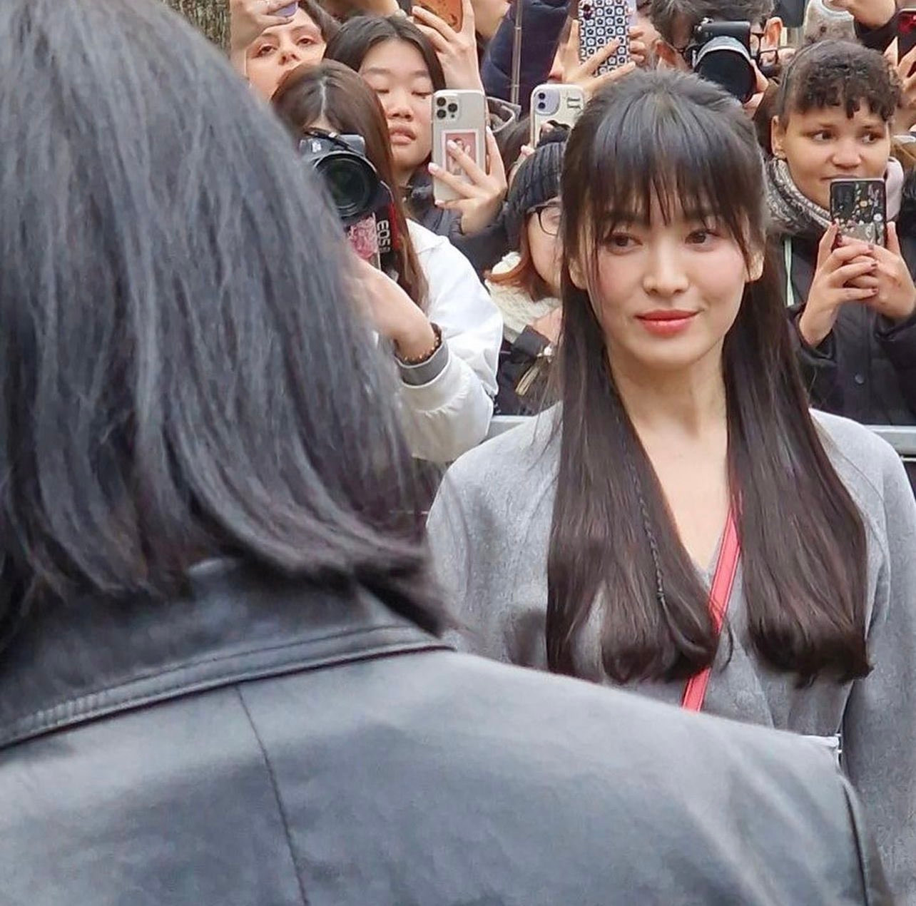 Xuất hiện trong trang phục đến từ bộ sưu tập mới của nhà mốt, trang điểm và làm tóc đơn giản, Song Hye Kyo khiến cư dân mạng trầm trồ vì khí chất thời thượng. Loạt ảnh chụp vội qua cam thường hay fan chụp màn hình của Song Hye Kyo cũng không thể "dìm hàng" nhan sắc của cô.