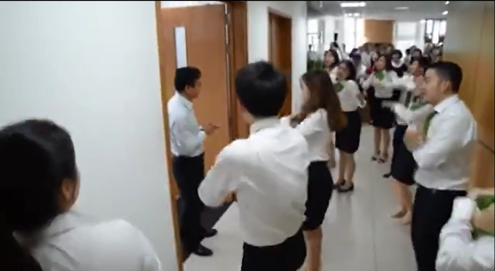 Mới đây, Facebook T.V.T đã đăng tải một đoạn clip dài hơn 2 phút quay lại "bữa tiệc sinh nhật" hết sức linh đình và công phu của nhóm nhân viên một chi nhánh ngân hàng tại TP.HCM dành cho "ông sếp" của mình.