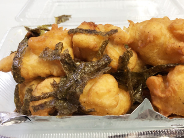 Thịt gà mềm, được ẩm ướp đủ vị rồi chiên giòn, sau đó ăn kèm với rong biển cũng tạo nên hương vị khá hấp dẫn.
