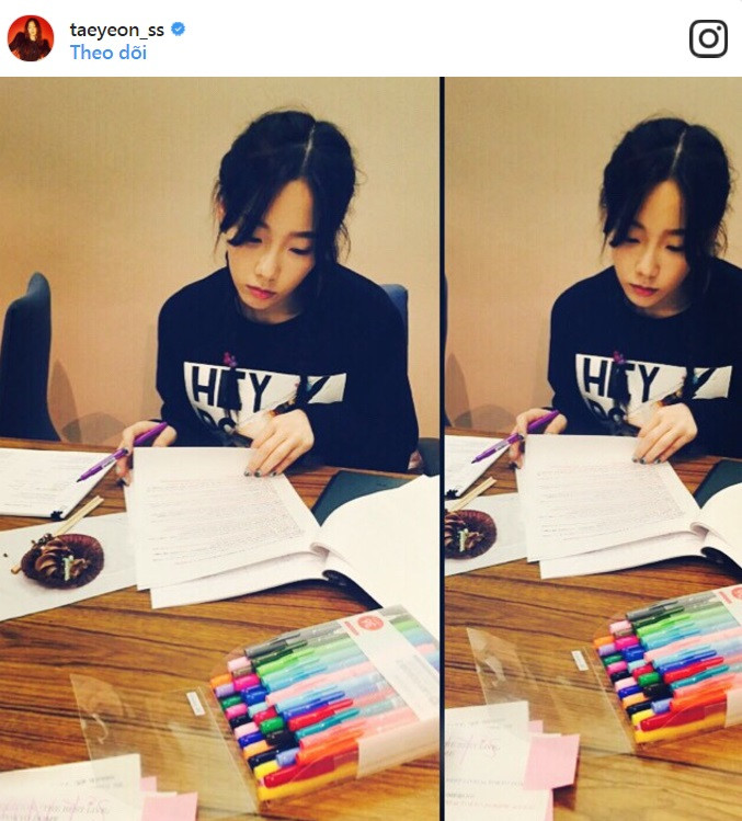 Khi ở nhà một mình, Taeyeon cũng rất thích bày thật nhiều bút màu ra để tô màu. Cảm giác bức tranh đen trắng dần trở nên rực rỡ đúng là thích vô cùng, mà đầu óc lại vô cùng thư thái nữa.