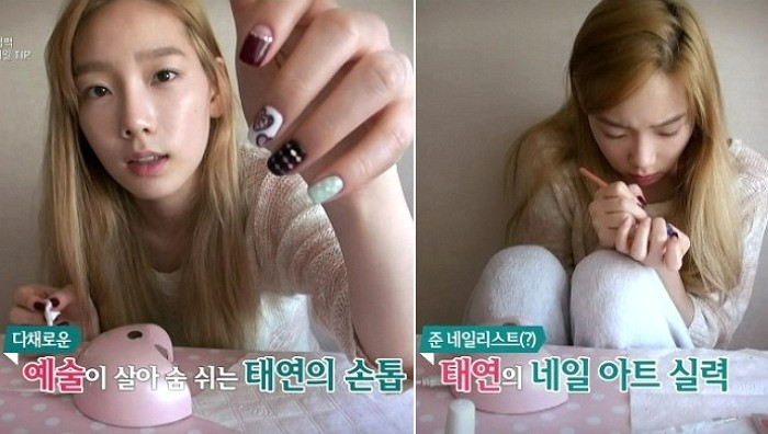 Fan của Taeyeon đều biết cô nàng rất thích tự sơn móng tay cho mình. Taeyeon luôn cập nhật xu hướng mới rất nhanh, và mỗi khi làm xong tác phẩm nào đều hào hứng khoe cho cả thế giới cùng biết.