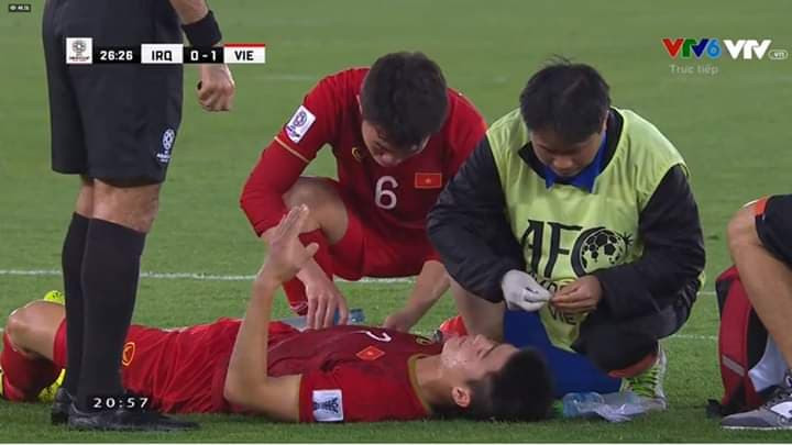 Đầu tiên phải nhắc đến là hình ảnh Xuân Trường rửa vết thương cho đồng đội. Phút thứ 27, trong một pha không chiến với cầu thủ Iraq, Duy Mạnh nhận cú cùi chỏ vào mặt. Sau cú va chạm, Duy Mạnh bị chảy máu ở mắt và nằm bất động trên sân. Chứng kiến Mạnh "gắt" nằm sân đau đớn, Xuân Trường nhanh chóng đến hỗ trợ bác sĩ sơ cứu cho đồng đội. Anh mở chai nước và nhanh nhẹn rửa tay trái đang dính máu cho Mạnh.
