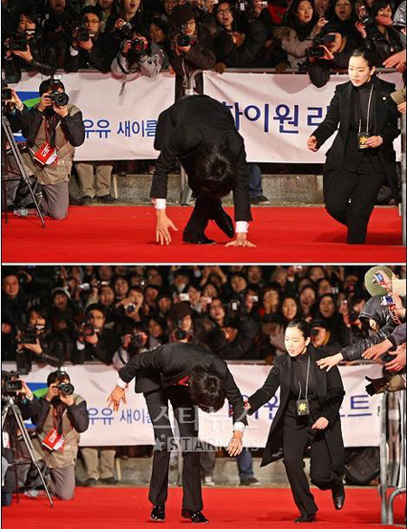 Lần đầu tiên đến dự Baeksang năm 2009, Lee Min Ho vô cùng hồi hộp và run rẩy đến nỗi anh đã vồ ếch ngay giữa thảm đỏ.