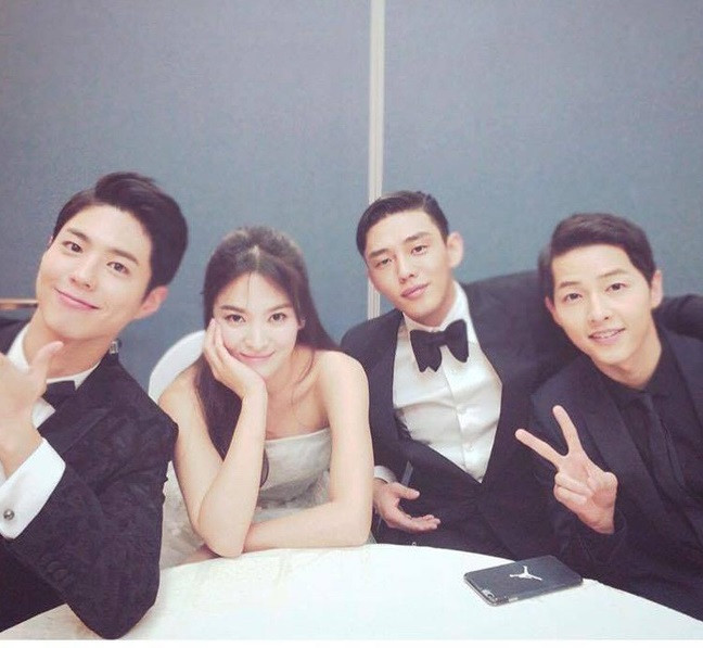 Bức ảnh “bộ tứ quyền lực” trên Instagram của Yoo Ah In cũng gây bão không kém. Yoo Ah In và Song Hye Kyo là chị em thân thiết cùng công ty quản lý, Song Joong Ki và Park Bo Gum cũng là anh em chí cốt với nhau. Họ đã cùng chụp một tấm ảnh hậu trường ngay tại giải Baeksang 2016.