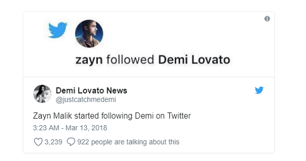 Được biết, Zayn đã bỏ theo dõi Gigi và mẹ cô nàng trên Instagram. Tuy nhiên, anh chàng lại nhấn nút theo dõi Demi Lovato. Nghi vấn nam ca sĩ để mắt tới Demi đang được đặt ra, mặt khác, cũng có thể cả hai sẽ hợp tác trong một dự án âm nhạc.