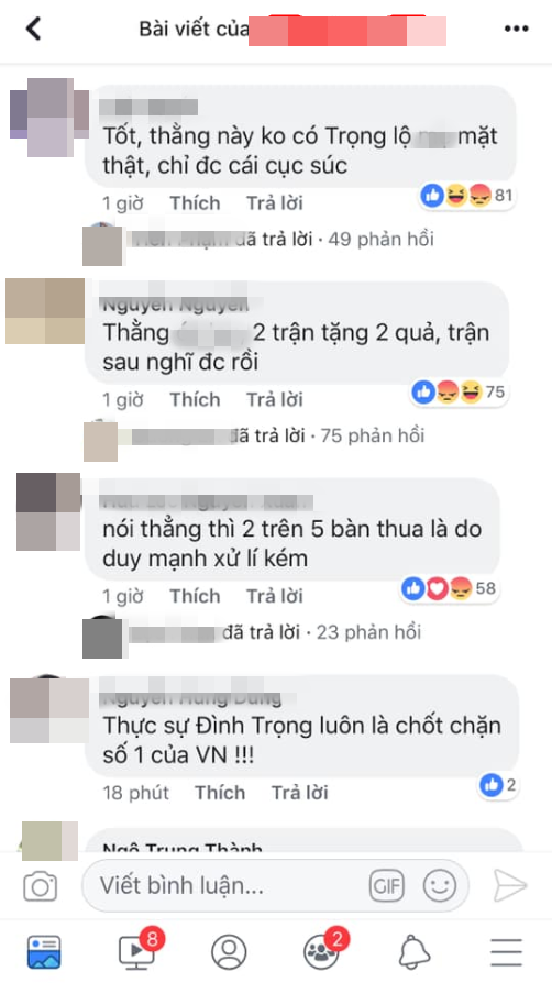 Họ mặc nhiên để lại những bình luận không hay, có ý chê bai thậm chí là so sánh anh với Đình Trọng.