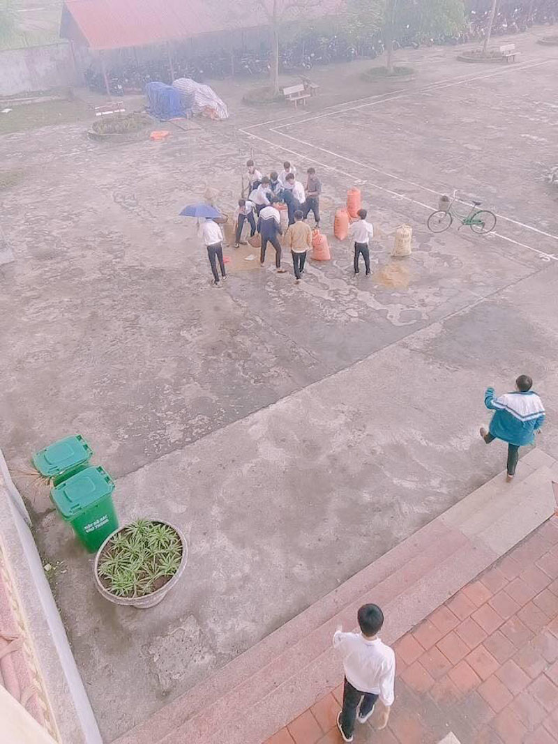 Mới đây, trong một nhóm mạng xã hội dành cho các bạn học sinh, sinh viên, hình ảnh một nhóm học sinh đang mải miết dọn thóc ngoài sân trường vào bao giúp bác bảo vệ vì trời mưa đã nhanh chóng nhận được nhiều sự chú ý.