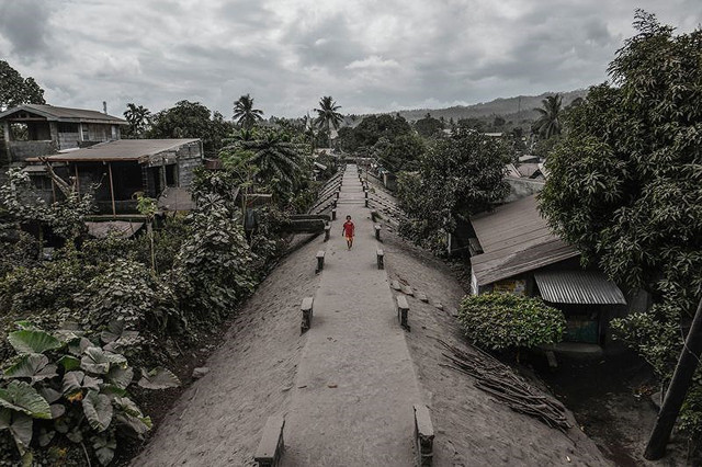Ngày tận thế. Từ sau vụ phun trào núi Mayon ở Philippines vào tháng 1, khu vực xung quanh bị bao phủ trong tro, biến môi trường trở nên xám xịt.