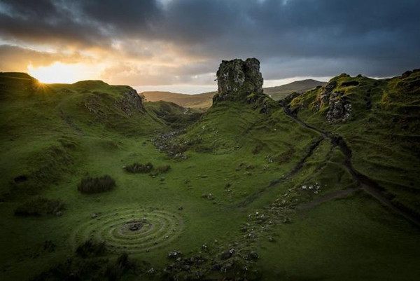 Khung cảnh ở Xoắn ốc celtic ở Scotland. Đối với người Ireland cổ đại, nó đại diện cho Mặt Trời và năng lượng vũ trụ được xem như sinh ra từ đó.