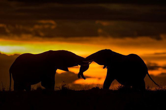 "Những con voi trẻ thường bước vào cuộc giao tranh thân thiện từ rất sớm, điều này giúp định hình cấu trúc xã hội và chiến thuật sống còn. Tôi nhìn thấy hai chú voi bước vòng quanh nhau rồi tiến đến gần trong ánh vàng mặt trời phủ khắp chúng.” - Abhilash Kar.