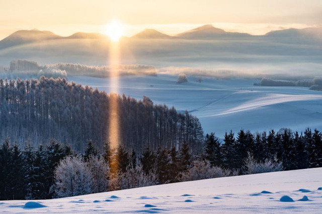 "Nhiệt độ sáng hôm đó khá lạnh. Khi Mặt Trời ló ra từ đỉnh ngọn núi, những tia nắng chiếu sáng Hokkaido, Nhật Bản." - Morio Okubo.