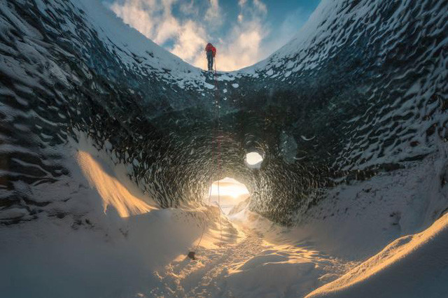"Tôi chụp bức ảnh tuyệt đẹp này ở Iceland sau khi đi bộ vài kilomet đến hang. Tôi đi cùng một nhóm người và người hướng dẫn viên chỉ cho chúng tôi cách họ kiểm tra các hang băng hàng năm như thế nào” - Tom Parsons.