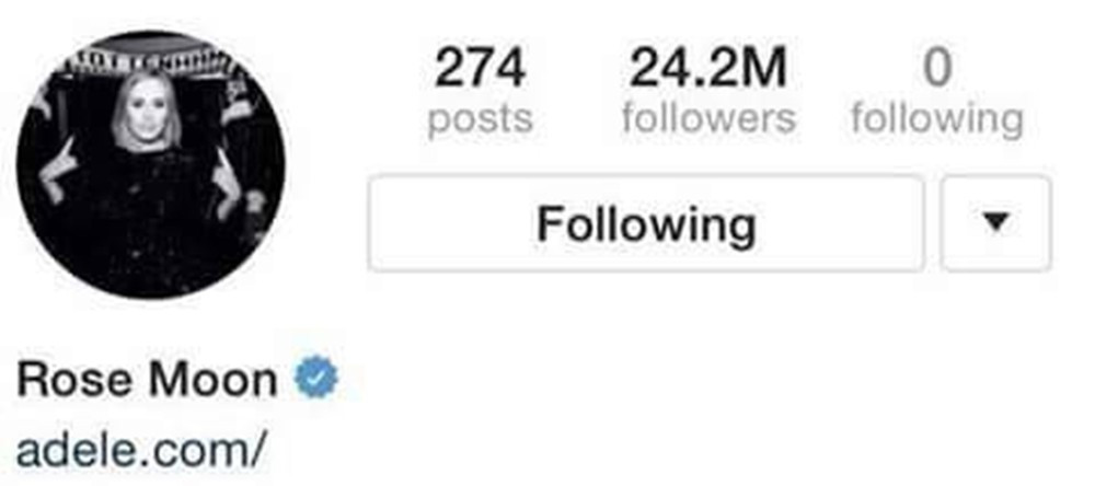 Nhân lúc nhóm quản lý của mình lơ là, Adele phá phách của chúng ta đã bất ngờ đổi tên tài khoản của mình thành Rose Moon. Tuy nhiên, cái tên này chỉ tồn tại chưa đầy 5 phút thì đã nhanh chóng được team quản lý của chủ nhân hit Rolling In The Deep “khai tử”.