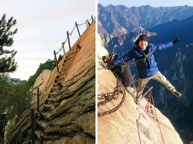 Con đường dẫn đến đỉnh núi Hua (Trung Quốc) được gọi là "Con đường lên thiên đàng". Cầu thang được cắt thẳng vào tảng đá, trong khi các dây xích sắt đóng vai trò như rào chắn. Những người muốn lên đỉnh sẽ phải leo cao hơn 2km. Cầu thang dốc đôi khi biến thành những con đường bằng gỗ hẹp cheo leo trên vực thẳm.
