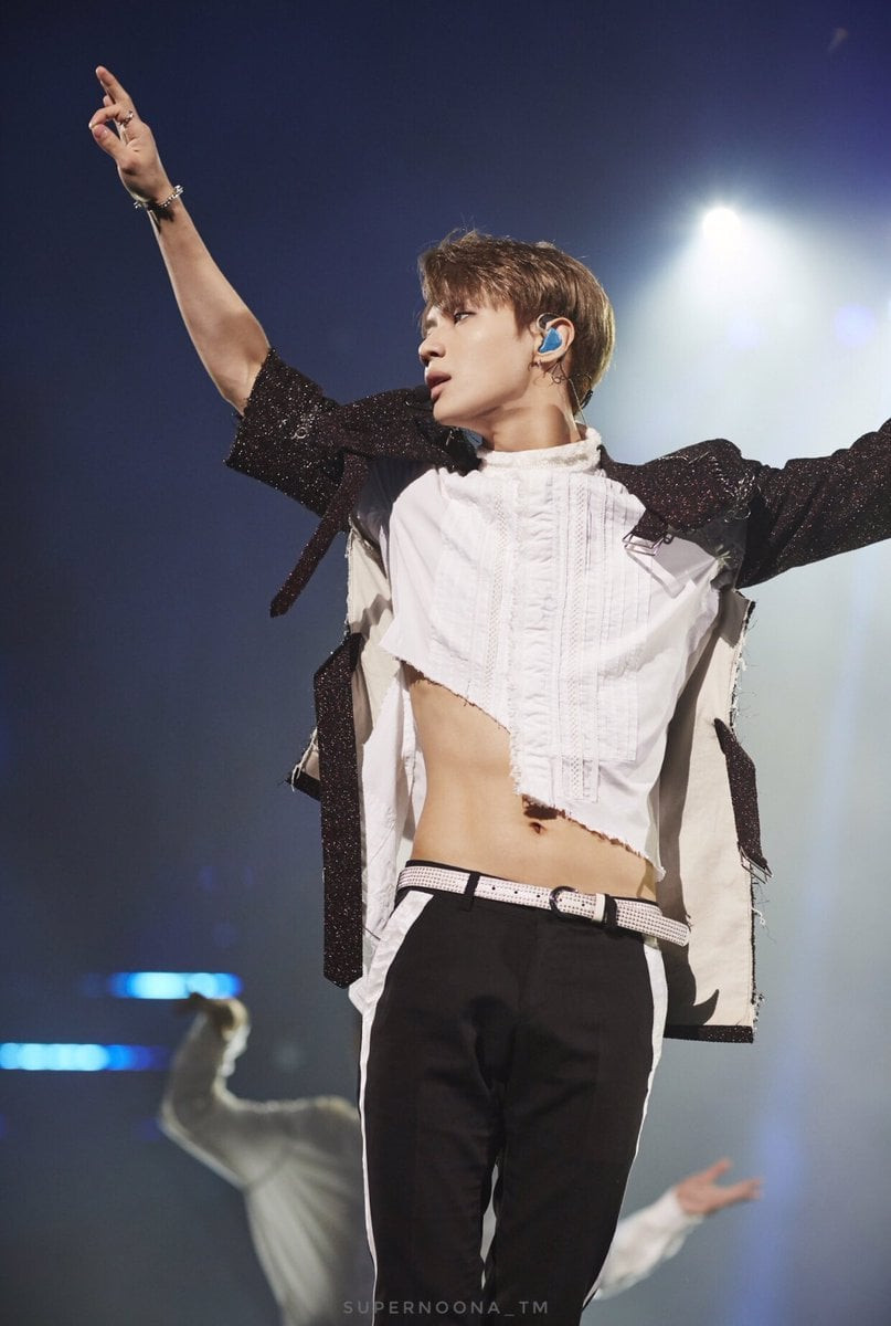 Trong khi nhiều nam idol chỉ dám mặc áo ngắn vừa phải, thì Taemin sẵn sàng xé áo để khoe được toàn bộ cơ bụng đẹp như tượng của mình.