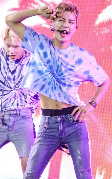 Wonho (Monsta X) cũng thuộc nhóm mặc crop top siêu đẹp. Thậm chí vòng eo của Wonho còn nhỏ như của phụ nữ nữa.