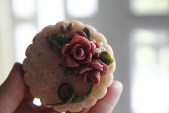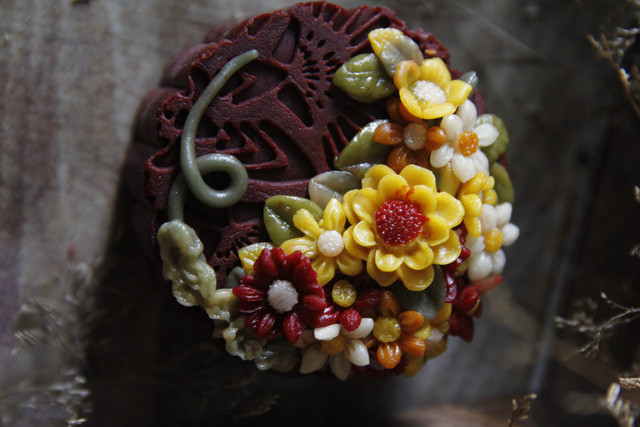 Bởi theo chị Ngọc: “Công đoạn sên nhân (sên nhân - xào nhân) mất rất nhiều thời gian. Vì sên nhân không đúng cách, chưa đủ đứng nhân thì bánh sẽ không vững. Sau đó phải tạo hoa bằng bột bánh, tôi phải chỉnh bằng tay và cả bằng khuôn rồi mới để lên bánh.”