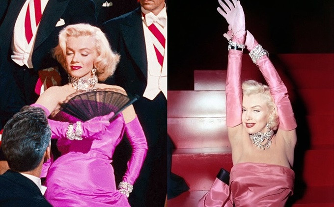 Trong màn trình diễn Diamonds Are A Girl's Best Friend của bộ phim Gentlemen Prefer Blondes (1953), Marilyn Monroe diện một chiếc đầm quây satin màu hồng gợi cảm cùng găng tay trắng và trang sức kim cương. Hình ảnh Marilyn trong bộ đầm hồng này đã trở thành huyền thoại được nhiều thế hệ mỹ nhân Hollywood "học hỏi" trong nhiều thiết kế tương tự.