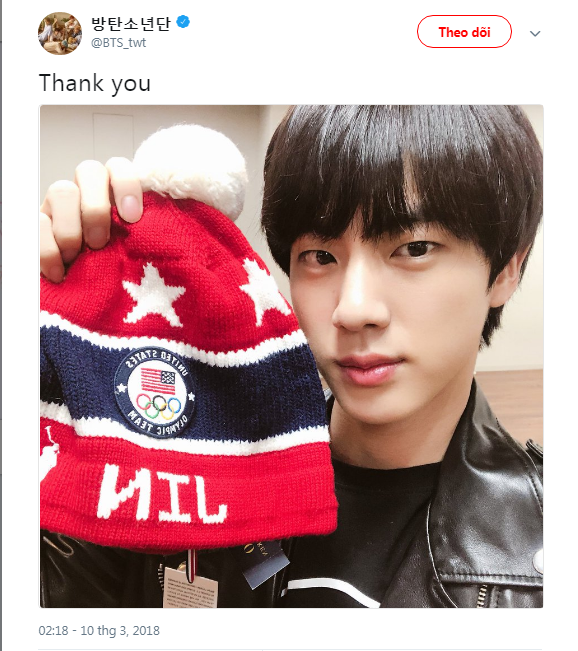 Bây giờ, điều đó đã trở thành sự thật. Vào ngày 10 tháng 3, Jin đã đăng một bức ảnh với chiếc mũ có tên mình và gửi lời "Cảm ơn" đến hai anh em.
