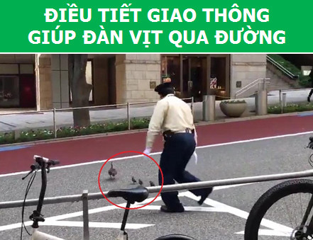Bức ảnh này ghi lại một câu chuyện rất đẹp về nước Nhật. Nhân vật chính là một cảnh sát người Nhật Bản đã ra hiệu dừng xe để nhường đường cho một đàn vịt băng qua được an toàn.