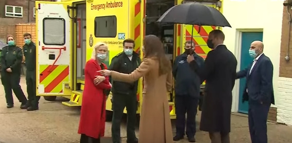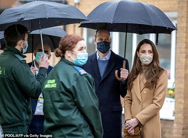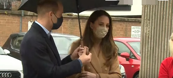 William - Kate đang đứng ngoài trời ở Trung tâm Cấp cứu thì trời đổ mưa nhỏ. Có người lập tức mang tới một chiếc ô và đưa cho Kate cầm, bởi lúc đó William đang nói chuyện. Một chút sau đó, William cầm lấy chiếc ô từ tay vợ, và việc này có vẻ rất bình thường.
