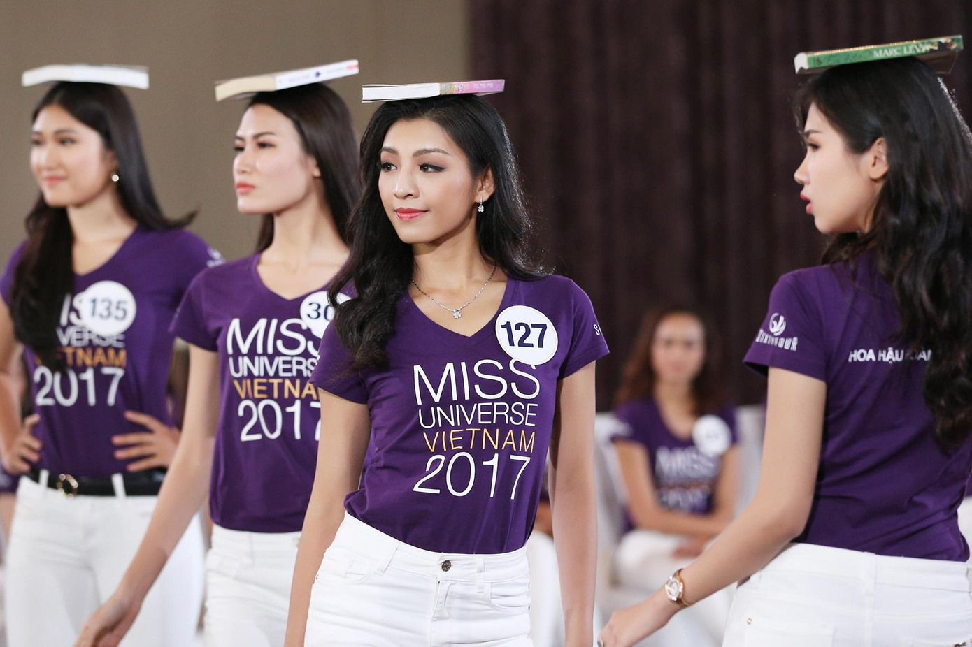 Các thí sinh trong cuộc thi Hoa Hậu Hoàn Vũ Việt Nam 2017 tập catwalk.