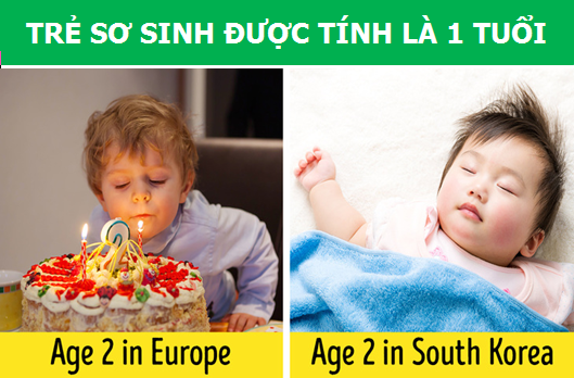 Trẻ sơ sinh ở Hàn Quốc và một số nước trên thế giới được tính 1 tuổi từ khi mới sinh ra. Ngoài ra, ở đây trẻ em được tính thêm tuổi không phải vào ngày sinh nhật mà vào ngày đầu tiên của Tết nguyên đán.