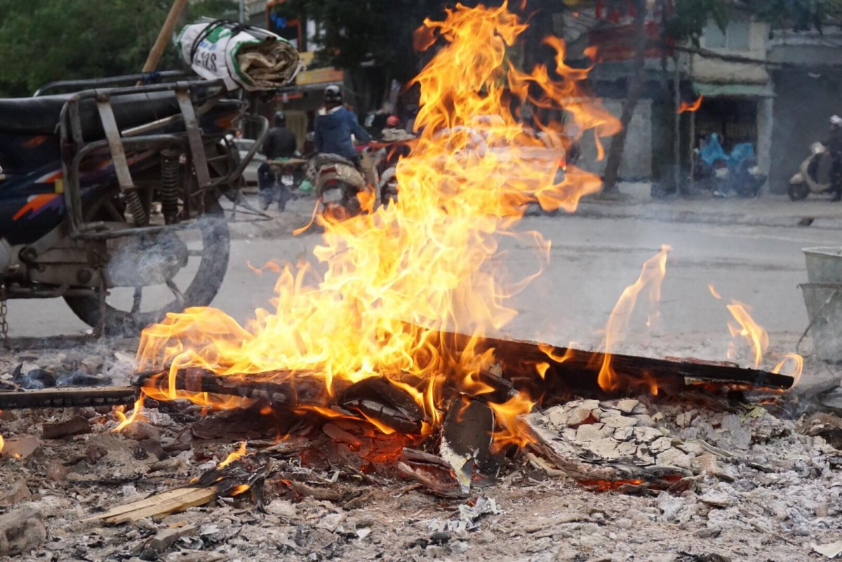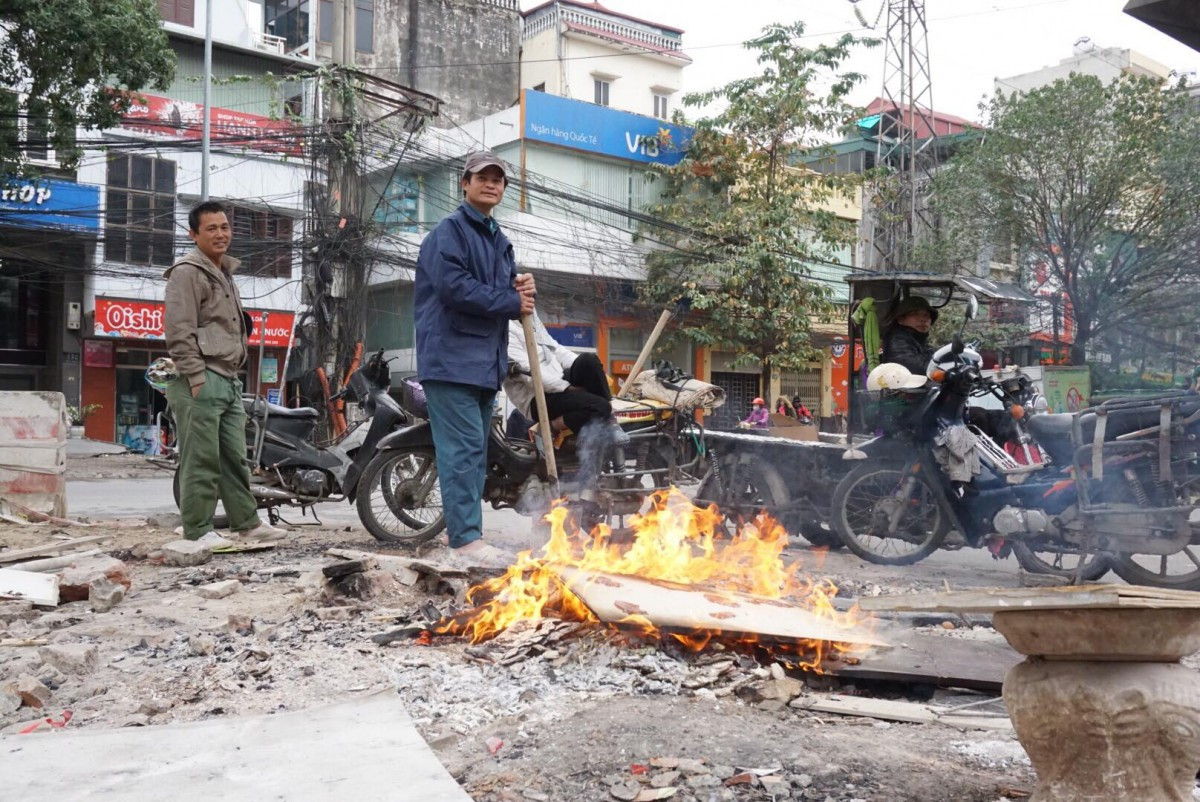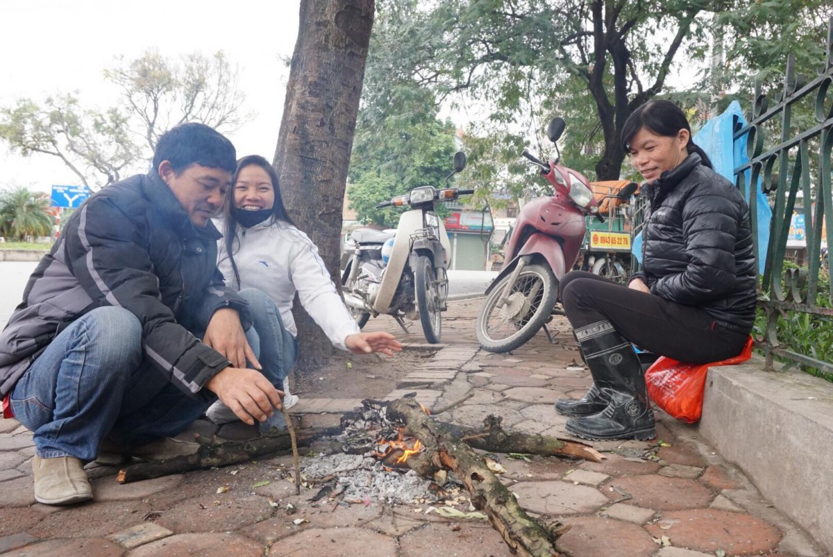 Mọi người tận dụng củi ở các công trình xây dựng gom lại đốt để sưởi ấm. Đây cũng là đợt không khí lạnh mạnh nhất từ đầu mùa Đông đến nay.